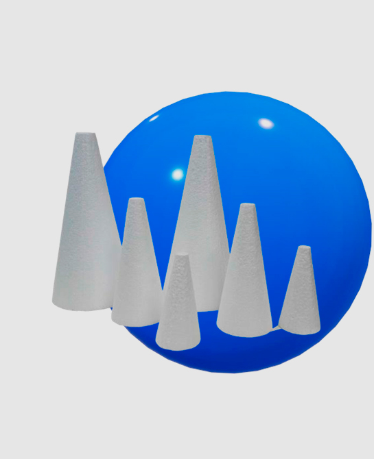 - As bolas e cones de isopor (EPS) comercializados pela VN Industria são amplamente utilizados em papelaria, decoração, confeitaria e trabalhos escolares e artesanais.